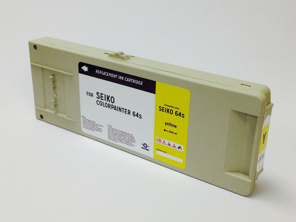 Seiko Eco 64s Odorless Series ink jet cartridge, filled with OEM matched Eco Solvent ink with computer chip. Just insert and print. OEM matched quality, color and durability, 100% guaranteed.